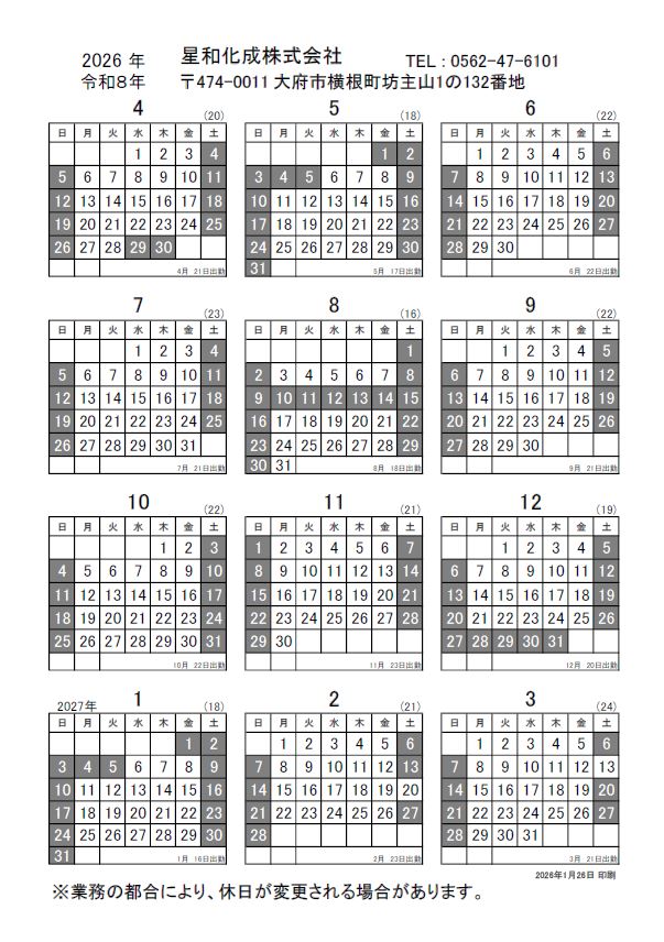 “星和化成 2026年度 カレンダー” をダウンロード 星和化成㈱ 2026年度 カレンダー.pdf – 13 回のダウンロード – 47 KB
